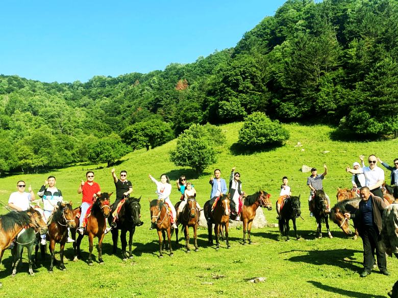 洗漱過后,我們就去騎馬巡山了。一邊騎著馬兒,一邊聽著《大王叫我來巡山》的歌曲,還真是有點意思。在一片蔥綠的草地上,大家被眼前的美景吸引,又忍不住拿出手機拍個不停??鞓返拿篮脮r光總是短暫的,愉快的旅程結(jié)束了,大家開車結(jié)伴返回西安,明天又要開始新的忙碌。再見了,關(guān)山牧場!
