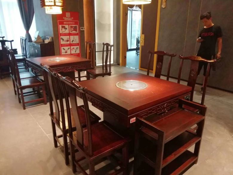 錦湯火鍋店的裝修設(shè)計(jì)風(fēng)格為中式火鍋店,所以,火鍋?zhàn)雷雍筒鸵尉ㄗ鰹閷?shí)木火鍋?zhàn)?,另外,在休息區(qū)和侯客廳還定做了幾套供顧客休息的餐廳專用休閑沙發(fā)。整個(gè)火鍋店看上去古樸典雅,充滿了文化氣息。試想一下,來(lái)到這里就餐,在這香濃的火鍋與朋友把酒言歡,是何等的快哉!