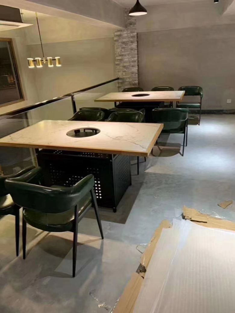 該店定做的火鍋桌為大理石臺面無煙火鍋桌,博菲克定制家具廠技術(shù)團(tuán)隊經(jīng)過改良,使得外觀更時尚大氣,座椅采用優(yōu)質(zhì)海綿軟包,舒適性更強(qiáng)。