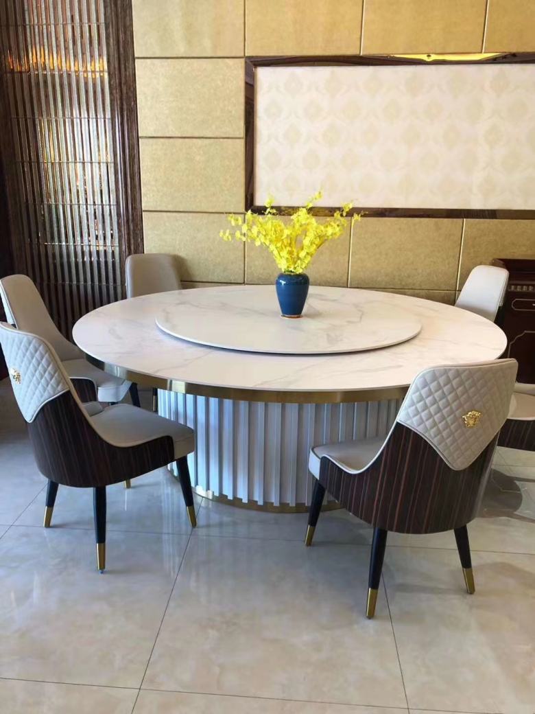 工廠業(yè)務(wù)經(jīng)理打開效果圖,仔細看了一遍餐桌椅的材質(zhì)要求和款式搭配,餐桌主要以大理石桌面為主,餐椅要求使用高回彈海棉和優(yōu)質(zhì)皮革,另外還有部分弧形卡座沙發(fā)以及博古架等配套家具。業(yè)務(wù)經(jīng)理表示,自助餐廳使用大理石餐桌非常好,油漬好清理。而且,去自助餐廳就餐的顧客一般都會花費比一般快餐店長的時間享受美食,因此,餐椅的舒適性也很重要!
