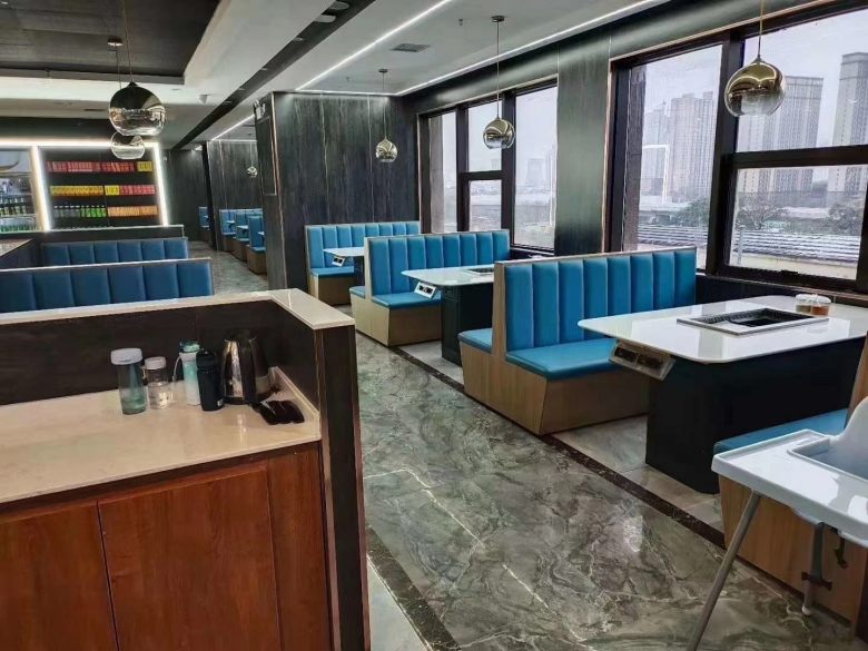 西安某餐廳涮烤一體桌卡座沙發(fā)交貨實(shí)拍