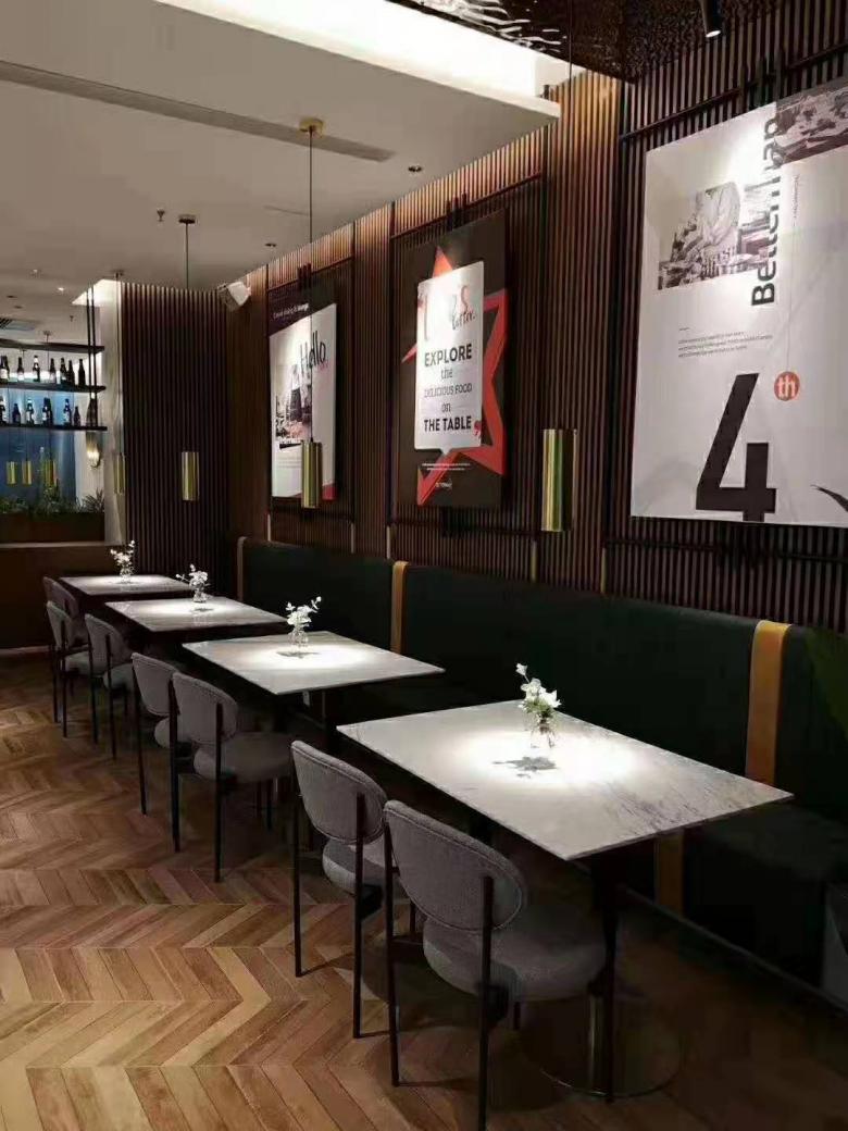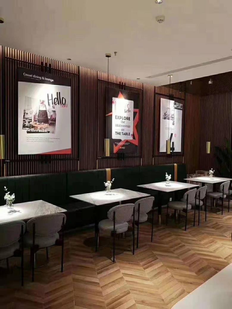 西安意風小鎮(zhèn)西餐廳就屬于后者??蛻羟宄约旱昝娴男枨?,因此,對于西安餐桌椅批發(fā)市場里面的廉價餐桌椅,她壓根就沒有考慮。而我廠業(yè)務(wù)經(jīng)理在介入這個項目之后,通過多次溝通,明白了客戶的真實需求。李總喜歡輕奢風格的餐桌,恰恰在展廳里有一款簡約風格的巖板餐桌瞬間捕獲了她的心,這款巖板桌子非常大氣有質(zhì)感,李總毫不猶豫的就選定了它!后面,李總也看上了我廠擺放的餐廳卡座沙發(fā)樣品,這是一款特別流行的高背板款式,是西餐廳里面使用最多的款式了。