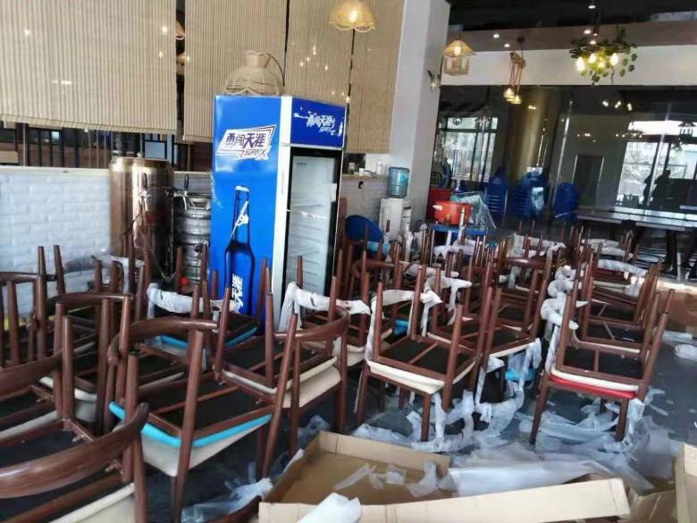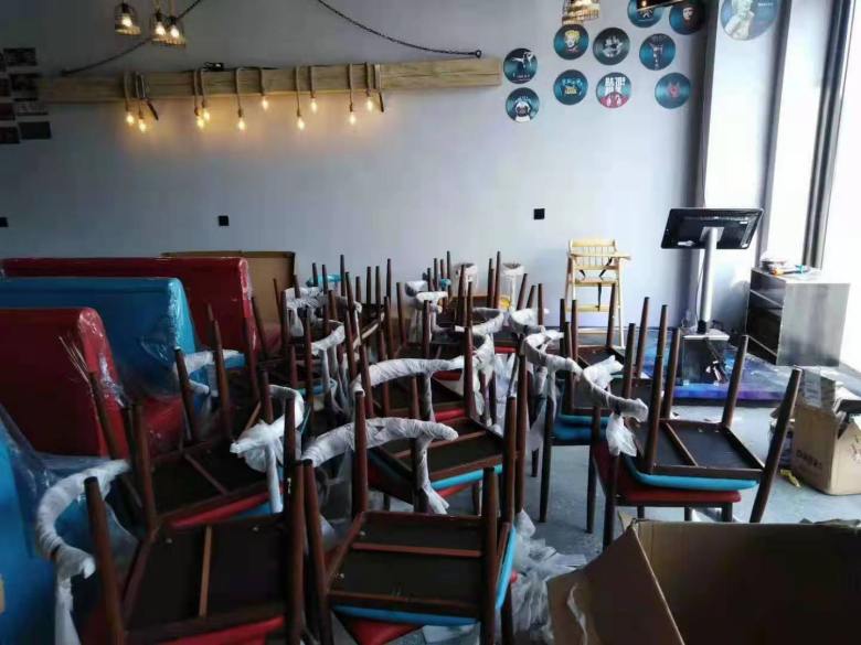 西安華鑫天悅城蠔門蝦王飯店餐桌椅交貨現(xiàn)場