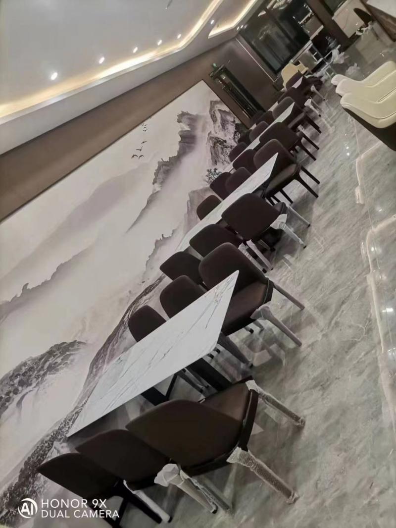 我們業(yè)務經(jīng)理在和紅星美凱龍推薦款式的時候,結(jié)合食堂吃飯人多、就餐頻繁、產(chǎn)生油污等特點,強烈建議客戶使用巖板餐桌,它不僅耐高溫、防油污滲透,而且質(zhì)地堅硬、美觀大方、持久耐用、物美價廉。