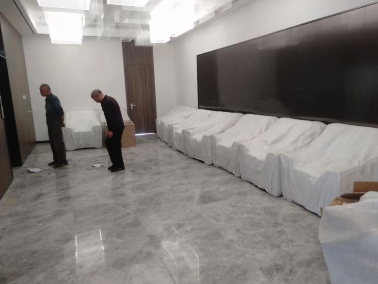 我廠為西安某藝術(shù)館量身定做的會客廳沙發(fā)全部完畢,下圖為小編拍攝的工人抵達(dá)現(xiàn)場進(jìn)行安裝的照片。