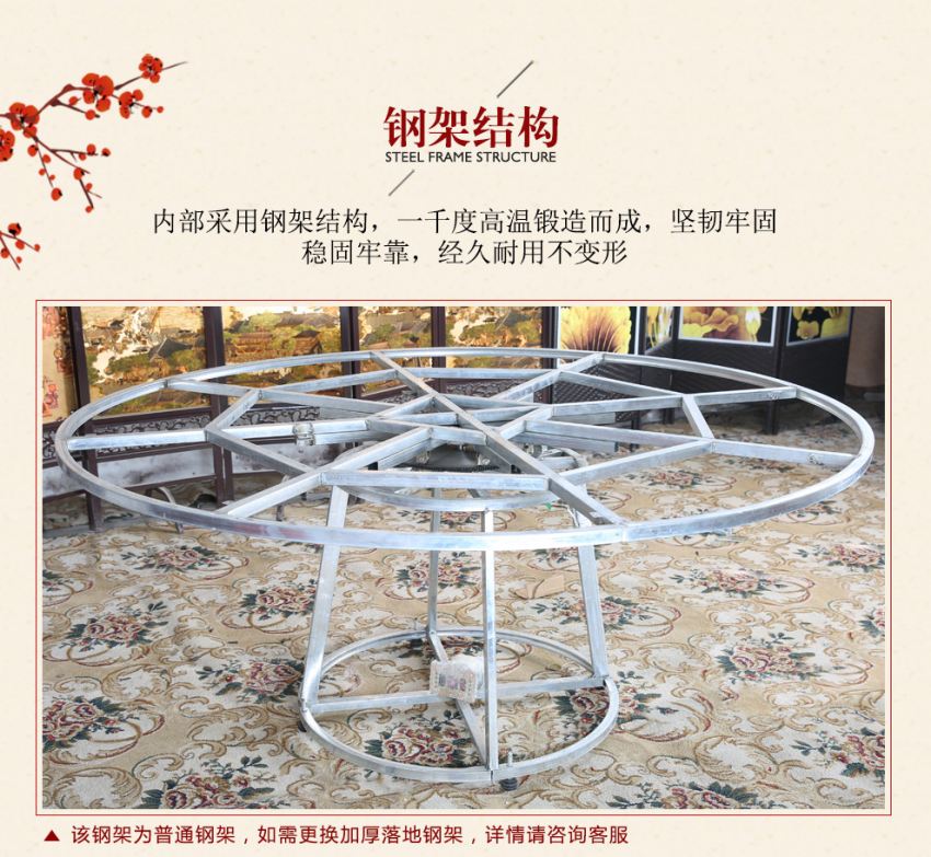 寶雞電動大圓餐桌采用現(xiàn)代中式風格設計,雙魚圖案形象逼真栩栩如生,寓意吉祥如意,年年有余。即是實用的餐桌家具用品,亦是彰顯品位的藝術品。大圓桌整體采用環(huán)保油漆,觸感油潤光滑,硬度高,防刮耐燙。天然原木紋理更加細膩,隨時突出自然氣息。主材料選用環(huán)保高密度板,表面實木木皮,自然原木紋理。內部采用鋼架結構,一千度高溫鍛造而成,堅韌牢固穩(wěn)固牢靠,經(jīng)久耐用永不變形。