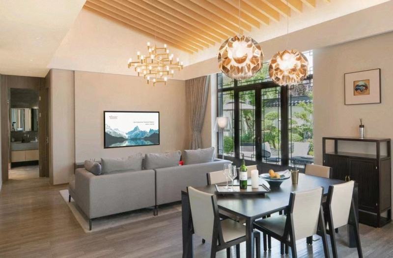 袁家村瑞斯麗溫泉度假酒店隸屬于瑞斯麗酒店及度假村管理集團(tuán),是咸陽市一座國際度假酒店,距離西安咸陽國際機(jī)場40分鐘車程,西安、咸陽兩市驅(qū)車1小時(shí)即可抵達(dá)。酒店位于國家4A級(jí)景區(qū)袁家村黃金位置南門里,景區(qū)擁有五條主題街區(qū)(小吃街、書院街、酒吧街、祠堂街、回民街)匯集美食休閑娛樂等資源,北面是九嵕山唐昭陵所在,四面環(huán)山,視野寬闊,風(fēng)景優(yōu)美。 900㎡的室內(nèi)湯池,55個(gè)戶外大小湯池,結(jié)合中草藥配方,使賓客朋友們盡享尊貴的湯池體驗(yàn)。江南風(fēng)格的庭院式套房均配有私家湯池,齊全的居家配套設(shè)施,是您家庭出游、好友聚會(huì)的不二之選。袁家村瑞斯麗溫泉度假酒店擁有60間豪華客房與13套庭院式豪華合院,滿足不同人群的需求。暖色系的客房,自帶溫柔閑適的氛圍感。酒店精心定制的“瑞斯麗夢之床”,足夠讓你享受酣睡美夢。