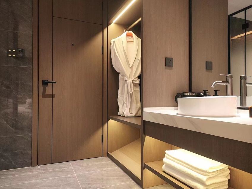 西安酒店設計公司結合當下流行的設計理念,根據(jù)酒店的定位,設計了現(xiàn)代簡約客房,整體效果更加溫馨、時尚、頗具潮流感,這種風格也是新老賓客認同感最好的風格。根據(jù)設計方案,博菲克家具廠拆單元深入工地仔細量尺,和設計師認真的核對色板,最終確保了落地效果,驗收后效果甲方及設計公司都一致好評!