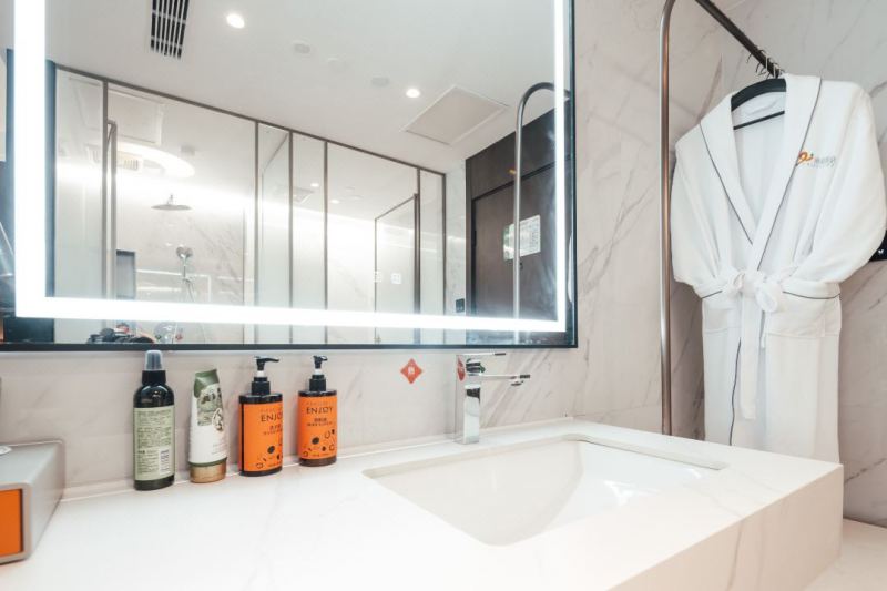 普通酒店需要保安、前臺、財務、保潔等固定工作人員,成本較高,而他們酒店固定工作人員只有一位店長和兩位保安,房嫂是家政公司的兼職,人力成本低導致房價相對較低。無人酒店主要針對商務人士,手機訂房、刷臉入住、沒有前臺、退房無人查房可以讓年輕人花更少的錢獲得更好的硬件體驗。