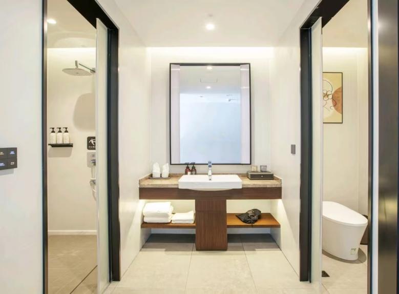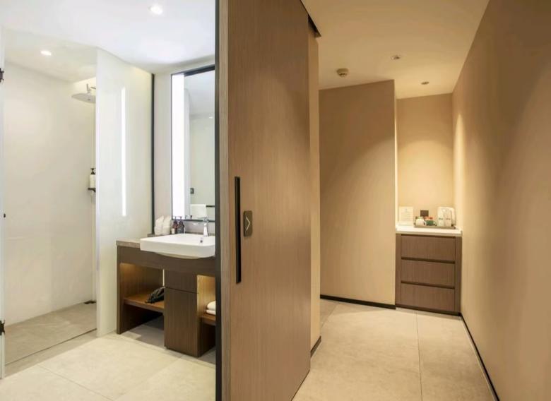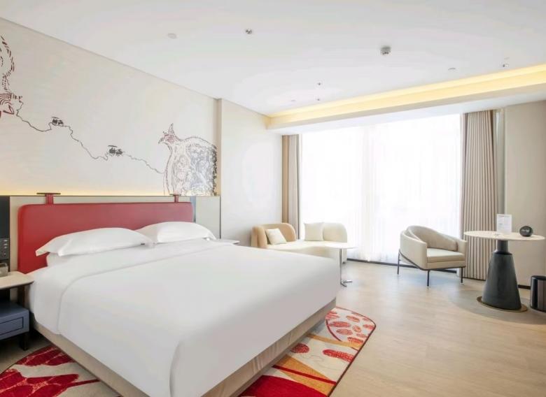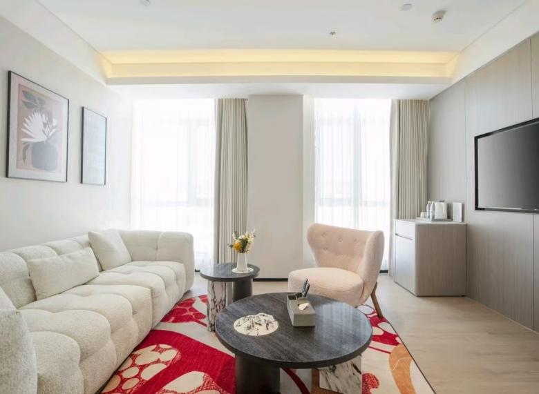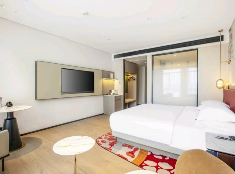 平?jīng)鰵g閱酒店環(huán)保性好,床、柜等選用E0級板式家具,移動家具則由我廠負責搭配設(shè)計,與客房整體風格協(xié)調(diào),并且更好的提升了室內(nèi)空間的氛圍感和時尚感。