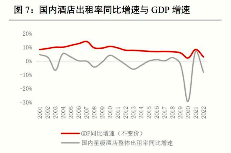 我們認為 GDP 對酒店行業(yè)的影響在逐漸減弱,行業(yè)內部供需結構調整對酒店行業(yè)更重要。從中、美兩國入住率同比增速和 GDP 增速趨勢可以看出,兩者呈現分階段相關的特點。2008-2009、2010-2012 兩個階段入住率同比增速和 GDP 增速相關性較大,2013 年之后影響入住率的主要因素轉向行業(yè)內供需結構調整,疊加限三公、疫情等突發(fā)事件影響,相關性逐漸減小。