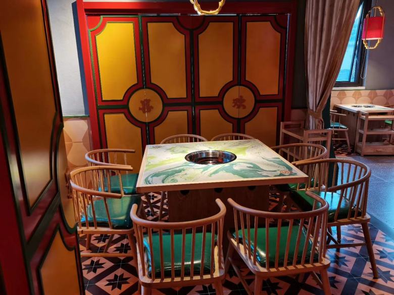 為曲江歡喜記火鍋店定做的火鍋?zhàn)酪危c其店面裝修環(huán)境融為一體,帶給人一種特別溫馨的感覺,瞬間就能帶給客戶一種翱翔在草原上的氣息。